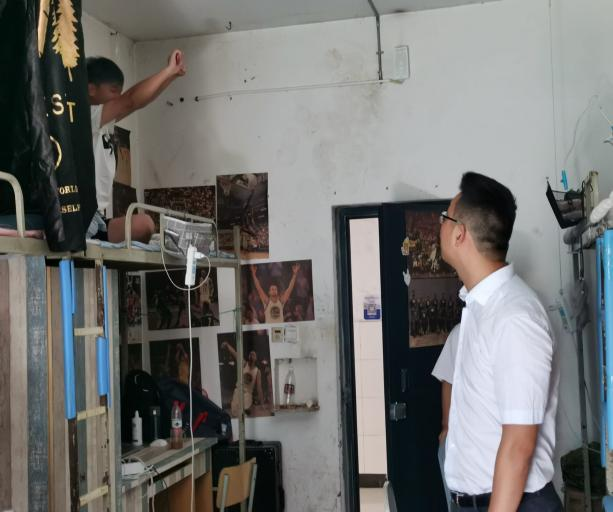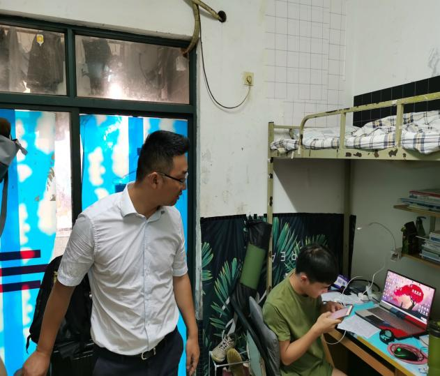 学院党总支副书记刘宏宇在走访寝室时提醒同学们在享受假期的同时也要时刻绷紧防诈反诈和疫情防护的弦,同时要注意宿舍防火用电安全,人走要关好水电气和门窗。同时他还不忘叮嘱教育同学们:“宿舍不仅是住的地方,也是一个文化聚合,我们精心培育宿舍文化,让宿舍成为学生修身立德、怡心养性的精神家园。”