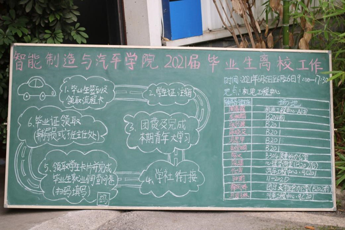 为高质量完成2021届毕业生离校相关工作,智能制造与汽车学院提前进行周密安排,于6月25日-26日在机电工程中心设立毕业手续集中办理点,提供“一站式”服务,尽可能为毕业生们提供便利。