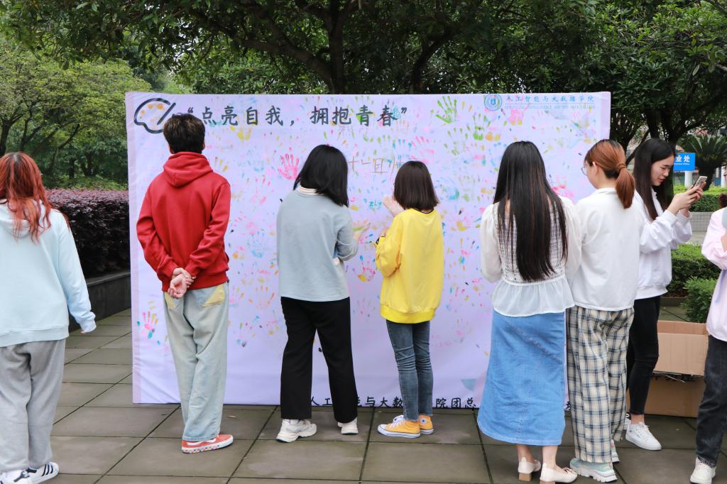 5月25日是全国心理健康日,“525”即“我爱我”,意思是大学生首先应该学会爱自己,关注自己的心理健康和心灵成长,拥有健康的心理,由爱自己而推广为爱他人。因此,重庆电子工程职业学院大学生心理健康教育咨询中心携手人工智能与大数据学院团总支·学生会心理部特此在学子广场举办了本次5月25日“点亮自我,拥抱青春”大学生心理健康主题活动。