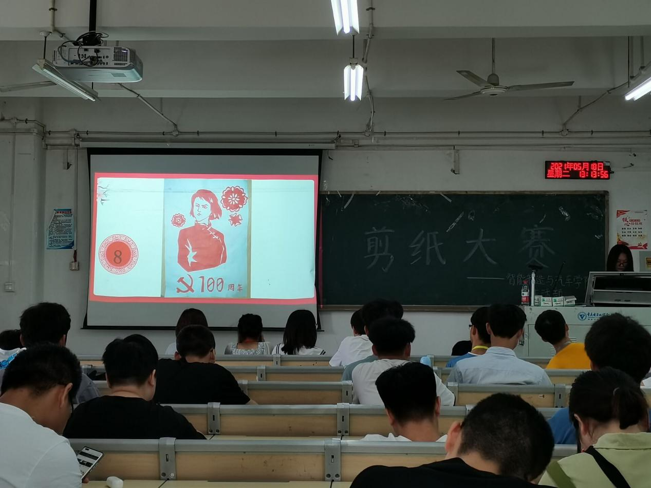 中国剪纸有着悠久的历史,它是广大人民在生活和劳动中的杰出创造,它散发出浓郁的泥土气息,有着质朴的美,它生动地反映出人民的智慧、情趣和对生活的认知,是中国传统民间艺术中一朵璀璨的明珠。通过剪纸剪出红色人物、红色故事,感受红色精神,致敬中国共产党成立100周年,展现当代大学生的风采与能力,放飞同学们的激情与梦想,5月18日中午12:30在9-412教室举行第十四届寝室文化艺术节之剪纸大赛。其它学院学生会代表、我院各班班级代表、大学生自律中心代表参加了此次活动。
