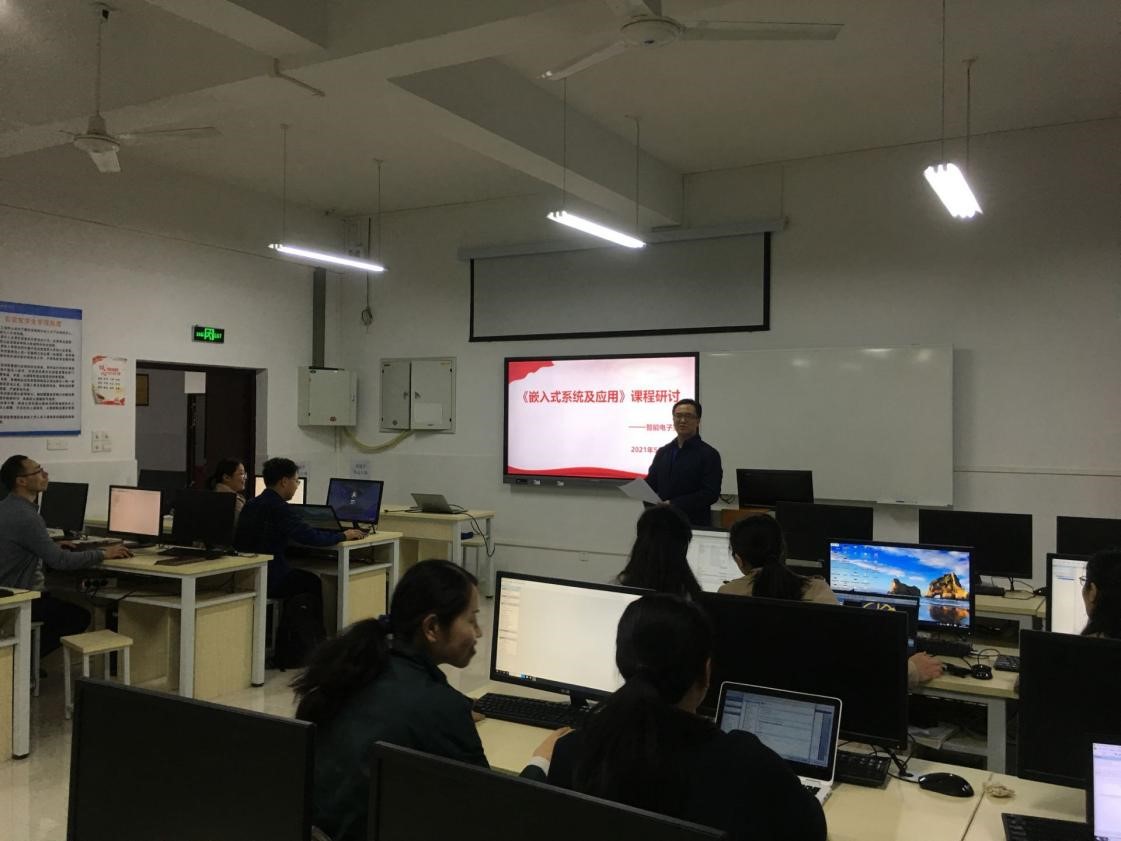 为不断提升教师教学能力,落实职教课程新教学理念,全面深化“三教”改革,电子与物联网学院智能终端技术与应用专业于5月24日在12-206举行专业模块《嵌入式系统及应用》课程研讨活动。学院智能电子系主任王用鑫主持,智能终端技术与应用专业全体教师参与 。