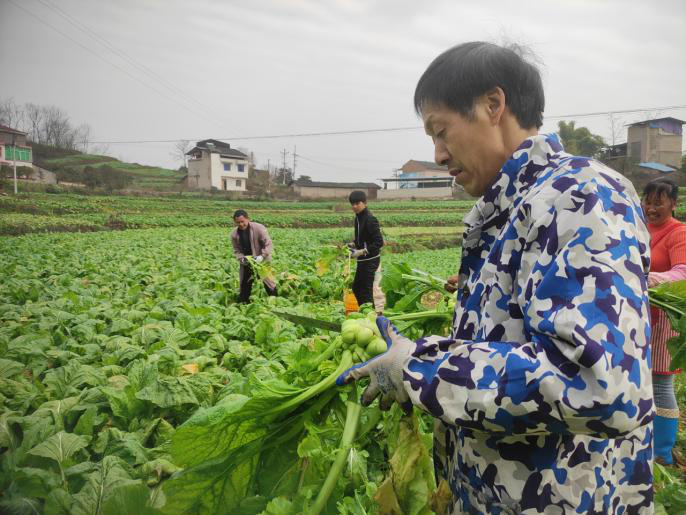 图为种植榨菜农户收割榨菜场景