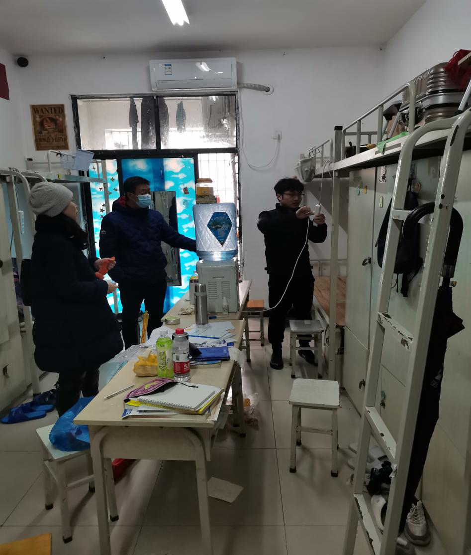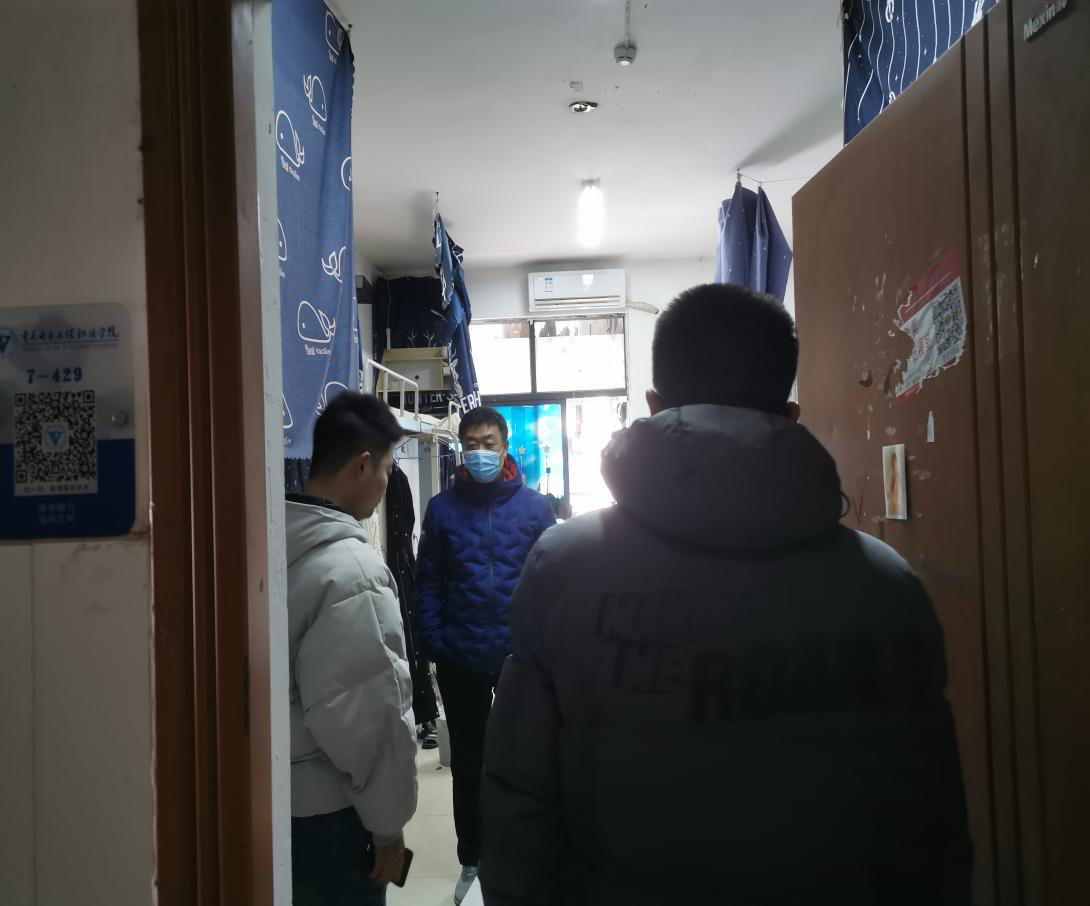 为贯彻落实教育部、市教委有关会议和相关精神,及学校关于切实做好寒假(春节)期间疫情常态化的学校安全稳定工作的通知。1月18日,电子与物联网学院党总支书记张红斌、党总支副书记毛弋带领全院辅导员、班主任深入学生宿舍认真检查学生“三关”(关水、关电、关门窗)落实情况,做好防火、防盗工作,同时了解留校学生的实际情况,站好最后一班岗。