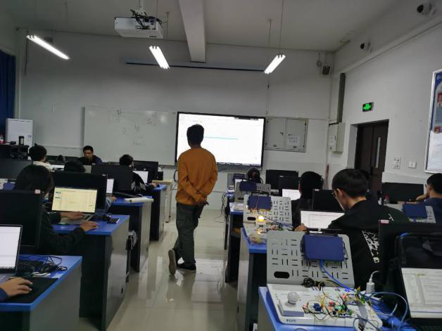 “1+X”传感网应用开发(中级)证书考核分为理论部分和实操部分。其中,实操部分占分比70%,题目类型灵活多样,需要考生在有限时间内完成模块接线、代码调试、数据采集、结果验证等多个步骤,成为多数学生的短板。为此,团队教师们总结实践环节命题策略和方法,依据考试大纲拆分多个相对独立的微实例,分模块分章节进行讲授。团队成员集体备课分模块授课的思想,极大的促进了同学们的学习效率。各位老师负责不同的知识点和实训模块教学,聚焦职业技能核心目标,对实操题目进行细致的讲解,教师边做边讲,边讲边练,手把手指导学生。在教学过程中,也积极引入学生助教,让一些动手能强理解能力强的学生,参与到课堂实训演示环节中,形成传帮带作用,极大促进了课堂的教学效果。在临近考试期间,团队教师充分利用周末和晚上时间,不遗余力的进行指导和训练。在整个过程中,教师们往往不计个人得失,坚持不懈的付出,学生们积极的学习,持续的努力,共同形成了良好的教与学氛围。