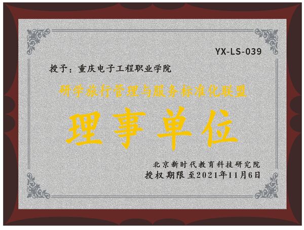 为深入学习贯彻习近平新时代中国特色社会主义思想,全面落实党的十九大及十九届二中、三中、四中、五中全会精神,增强职业技术教育适应性,大力培养技术技能人才。按照《国家职业教育改革实施方案》和“1+X”证书制度试点工作系列文件精神,稳步推进重庆市职业院校“1+X”证书制度试点工作,我校智慧健康学院以“育训结合、书证融通,强力推动教学改革”、“多措并举、探索路径,倾力推行教学研究”为指向,与北京新时代教育科技研究院合作并授予重庆电子工程职业学院智慧健康学院研学旅行管理与服务标准化联盟理事单位。
