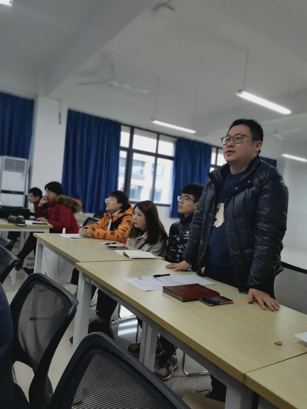 12月15日,电子与物联网学院信息工程系党支部在12-504教室召开支部大会,讨论并决议预备党员转正事宜。大会讨论了王朝晖、丁濛、刘红艳、徐芸熙、陈轲等五位同志的转正事宜。