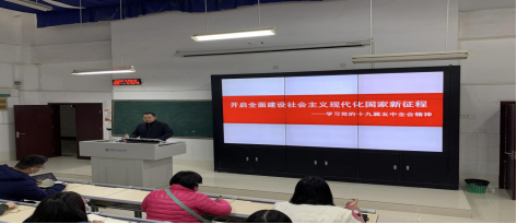龚小勇强调,党的十九届五中全会站在“两个一百年”奋斗目标的历史交汇点,我们要把学习好、宣传好、贯彻好五中全会精神作为当前和今后一个时期的重要政治任务,增强“四个意识”,坚定“四个自信”,做到“两个维护”,通过宣讲,让广大师生把思想和行动统一到五中全会精神上来。