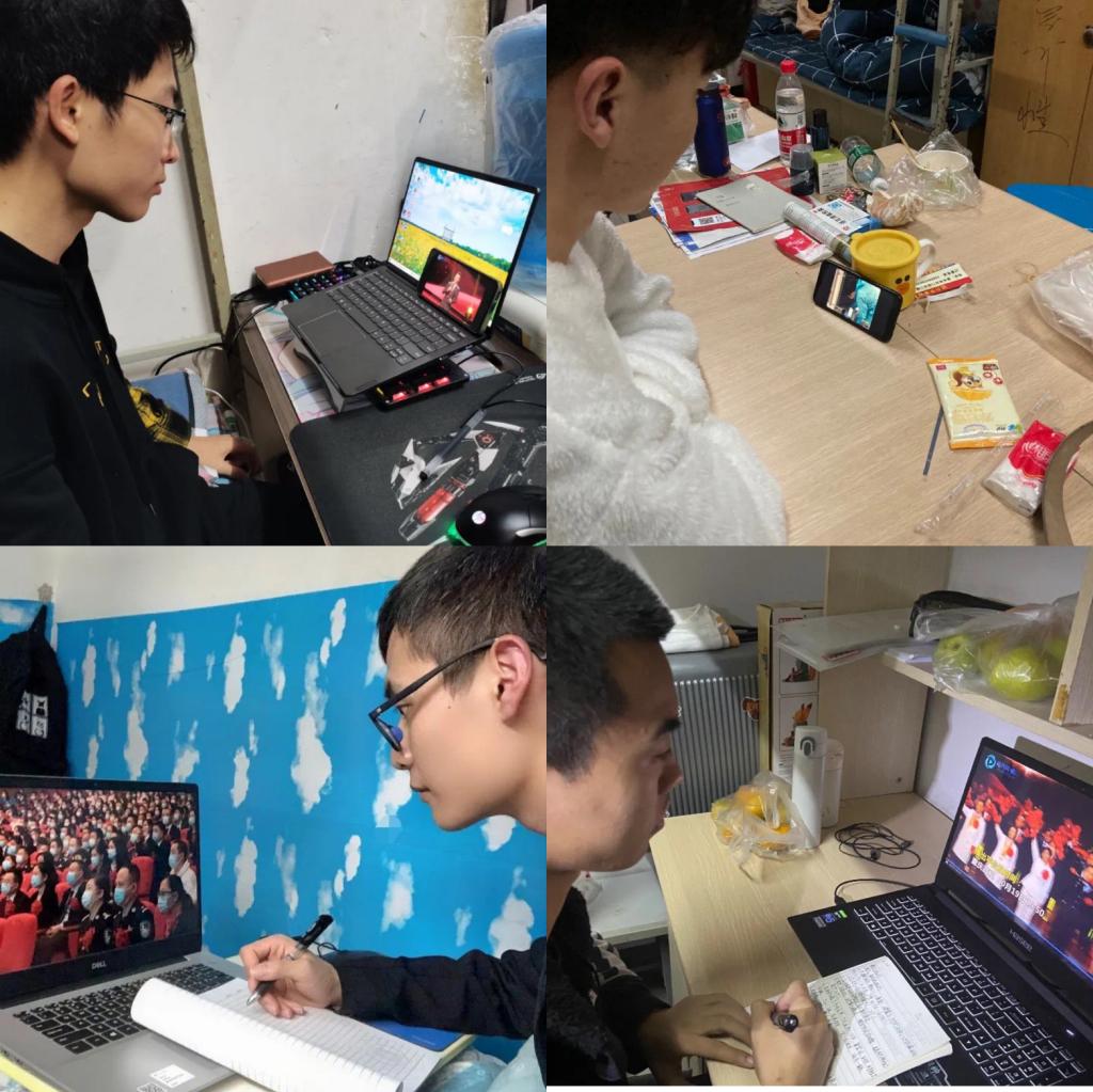 同学们收看抗疫表彰大会视频