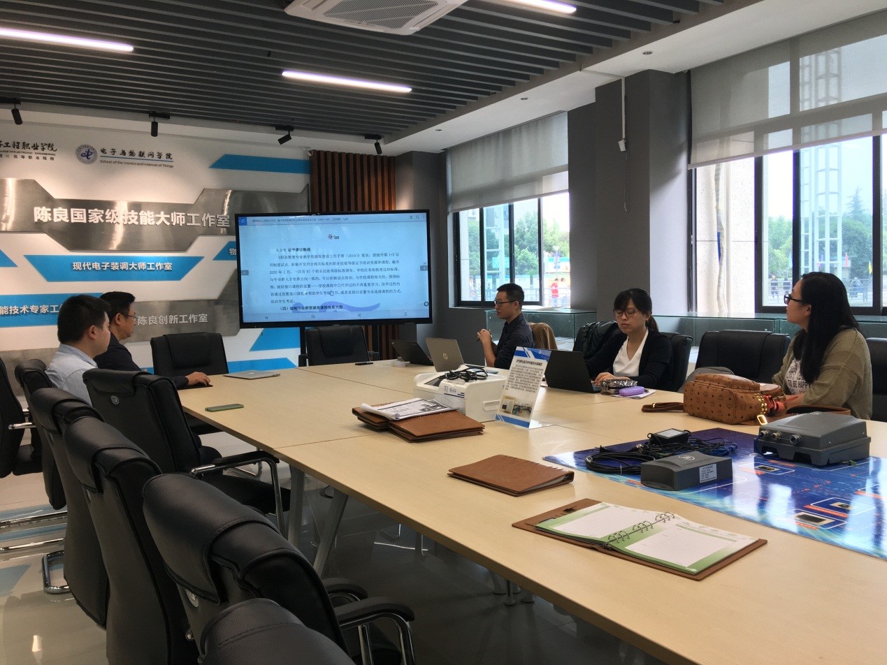 在本次研讨会上,双方从职业教育双高专业群资源库建设的总体定位、体系架构、建构逻辑、建设思路和建设内容等方面开展针对性探讨。首先,徐小辉教授针对我院物联网双高专业群课程体系构建、平台+模块设计、模块化教学实施等核心关切问题和期望目标进行了阐释和具体介绍。随后,高教社徐稷农先生介绍了基于“智慧职教”的专业群资源库建设方案,从“智慧职教”平台功能、资源库建设流程、工作环境、资源建设内容等方面进行了深入讲解。高教社冯桥先生则对专业群资源库的申请、运用进行了平台实操演示,同时结合智慧职教平台从平台运营角度梳理讲解了专业群课程资源库构建的思路。与会教师认真学习、积极提问,对资源库建设的各项工作细节与高教社两位老师进行了充分的交流与探讨,会议效果良好。