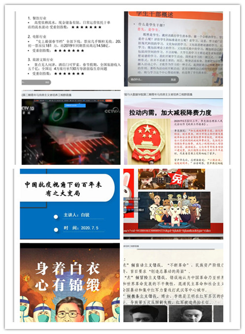 学院党总支书记吴焱岷为同学们带来了主题为“防疫下的大国之治”讲座,为同学们讲解了中国共产党的政治性、组织性、人民性这三个最大优势在此次疫情防治中的显著体现。学院党总支副书记刘宏宇为同学们带来了“疫情冲击下的世界格局”讲座。刘宏宇以经济发展为突破口,深刻分析了新冠疫情对世界各国经济发展的影响。学院团总支书记黄婧雯围绕“五四精神”、“中国近代历史”、“疫情下的爱国精神”、“时事政治”等方面,为同学们带来的是“新时代的爱国主义”主题讲座。学院学管科科长白锐进行了主题为“中国抗疫视角下的百年未有之大变局”的讲座。思想政治辅导员蒋丽所带来的讲座是“我们都是防疫战士”,为同学们科普并介绍如何科学防疫。辅导员郎捷的讲座主题为“马克思主义在中国”,以众多历史事件结合中国共产党的发展带领同学了解马克思主义在中国发展脉络。辅导员任丹丹的讲座主题为“做好新时代学生干部”,引导学生干部正确思考自身定位。辅导员孙梦娜的讲座主题是“科技兴国科技强国”,以习主席的话赠言同学们“理想因其远大而为理想,信念因其执着而为信念”,鼓励同学们筑梦正当时,青春建功新时代。