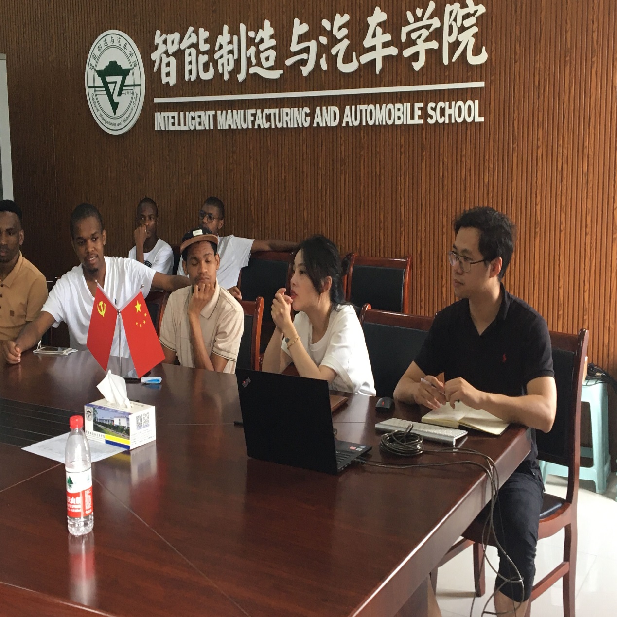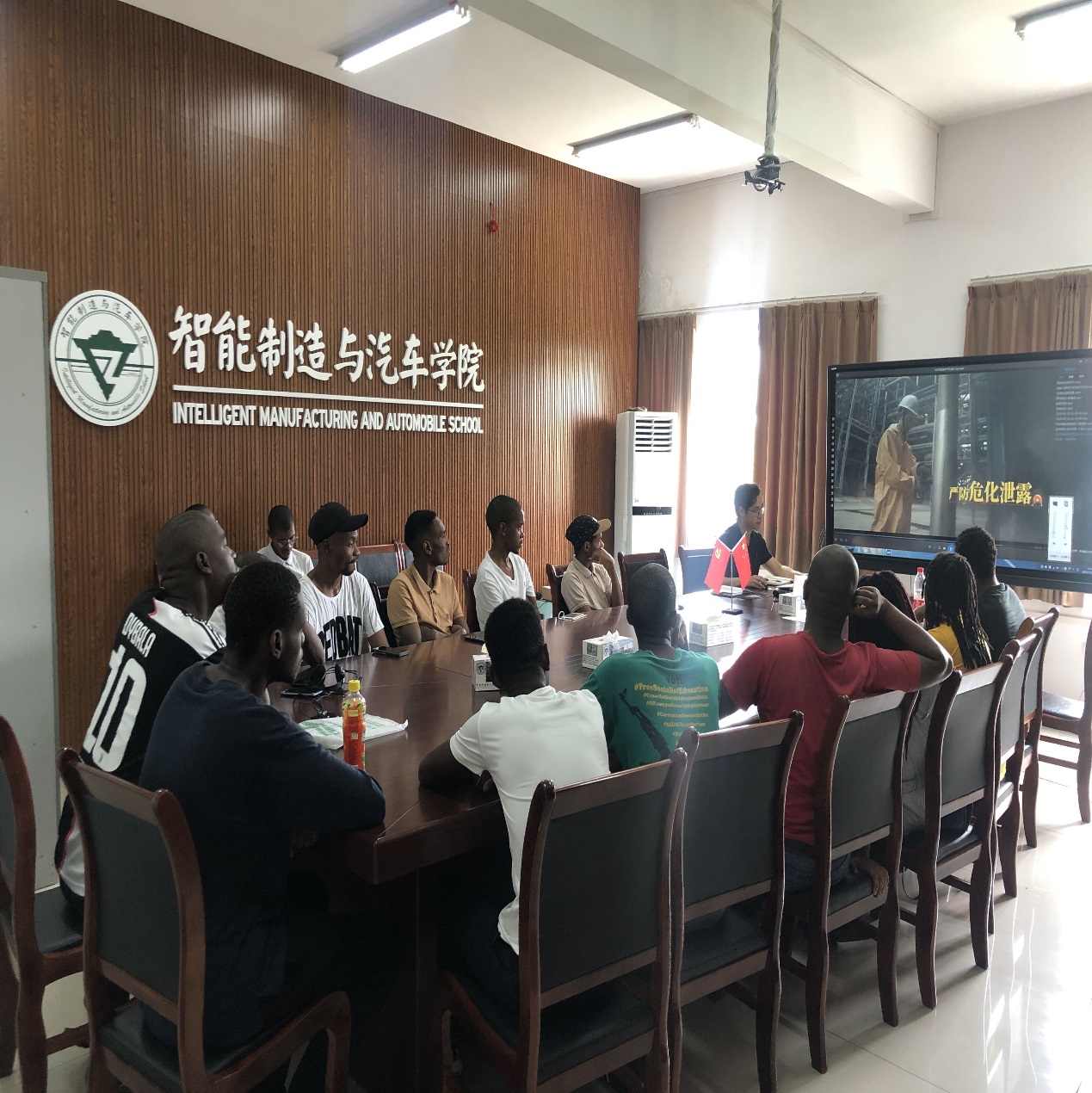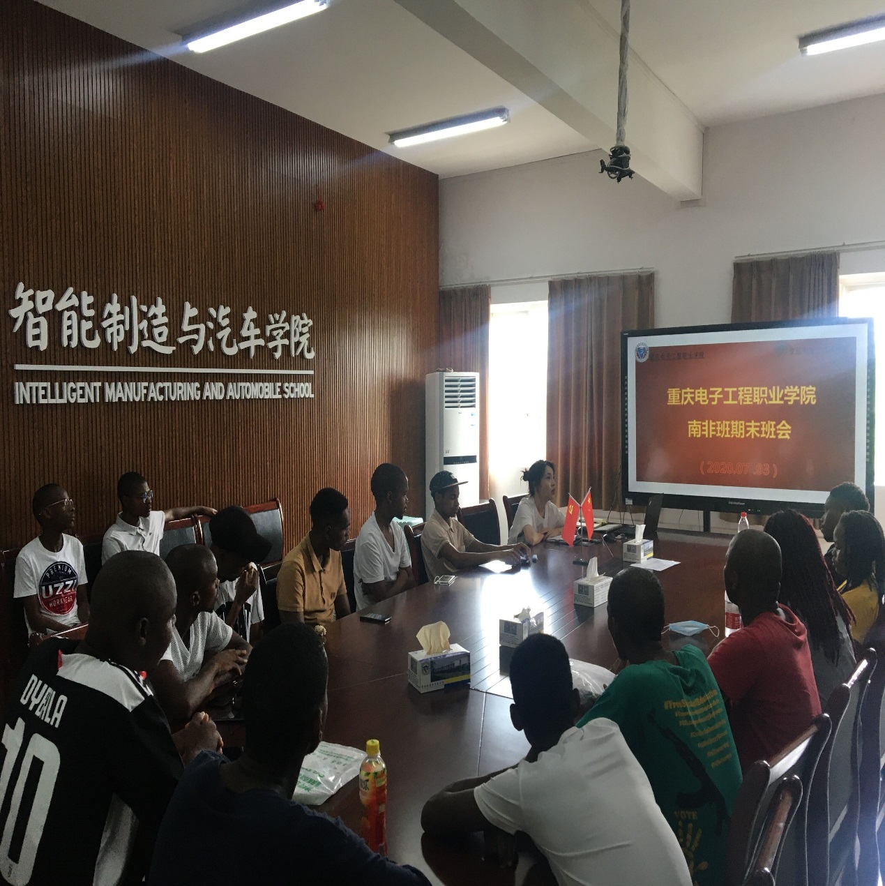 临近期末,2019~2020学年第二学期留学生教学工作接近尾声,为倡导留学生度过一个安全、有序、充实的暑假,并做好南非留学生第二阶段实训工作安排。2020年7月3日下午,智能制造与汽车学院在B301会议室召开南非留学生期末主题班会。南非班班主任李雯、陈义老师和重庆市南非项目中心周若雨经理及全体南非留学生参加了本次班会。