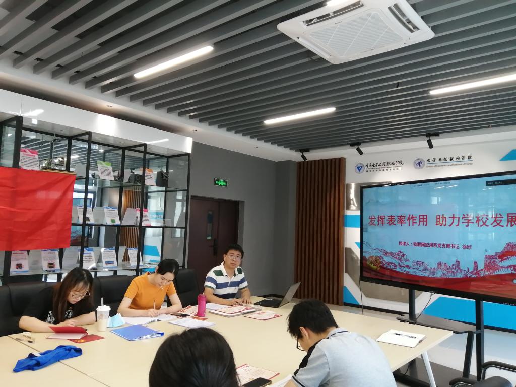 按学校组织部统一部署,物联网应用系党支部于2020年7月2日14:00在13301召开主题为“发挥表率作用,助力学校发展”的党日活动,活动后进行了专题党课学习。