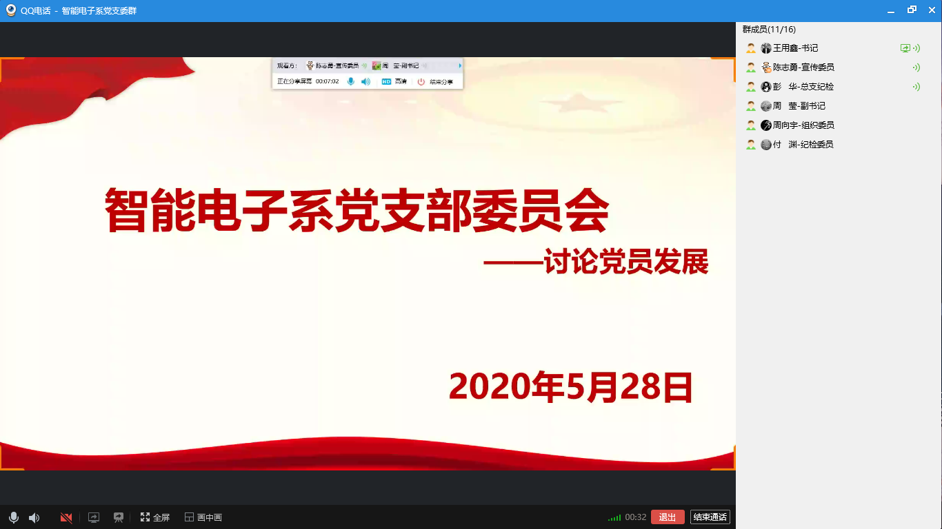 5月28日电子与物联网学院智能电子系党支部支委会通过在线会议讨论并确定入党积极分子为发展对象事宜。
