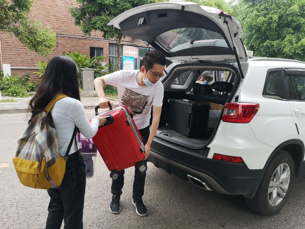 根据学校统一部署,5月19日至21日是我院2017级毕业年级部分同学返校整理个人物品期,每天返校毕业生在提供身份证、学生证、渝康码的基础上,通过网络平台预先报备时间,完成宿舍行李的整理和离校。由于校园疫情防控措施实行“人车分流”制度,在高温和阴雨多变的天气下,考虑到毕业生大件行李较多、搬运不变、宿舍距离校门或车站较远等困难,为减少学生离校奔波的辛苦,我院党总支在全院教师中发起招募,学院党员同志作表率,成立了“电物学院党员战疫志愿服务群”,自愿提供私家车每天分时段送别同学们前往乘车点。