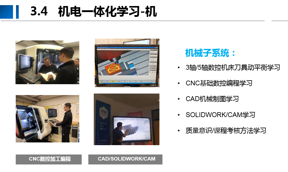 陈义老师主要围绕德国制造4.0、星空(中国)模式变革、德国职业教育现状、机电一体化教学体系、CAD/CAM/SOLIDWORKS软件技能学习等方面进行汇报与分享,把培训中的所学、所思、所感、所悟对全体教师进行了分享和展示。在教学方面,突出以行动为导向,以项目为载体,贯穿相关知识;注重实操,突出岗位技能;在评价体系方面,注重外部考核,严把毕业关口,统一职业能力建设机制,提升社会认可度,评价由注重结果转向综合能力。