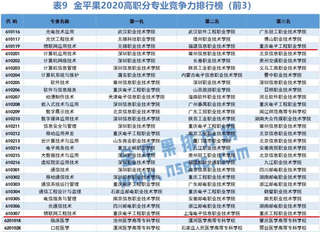 在“金平果“2020中国高职院校分专业类竞争力排行榜中,电子与物联网学院物联网工程技术专业位列排行榜第一位,物联网应用技术专业则在全国492所高职院校中名列排行榜第三位。从榜单情况看,我校是物联网应用技术、物联网工程技术2个专业同时进入全国前三甲的唯一院校。这是我院物联网相关专业在入列国家“双高计划”高水平专业群建设后,在持续发展过程中再一次获得业内及社会的高度认可。