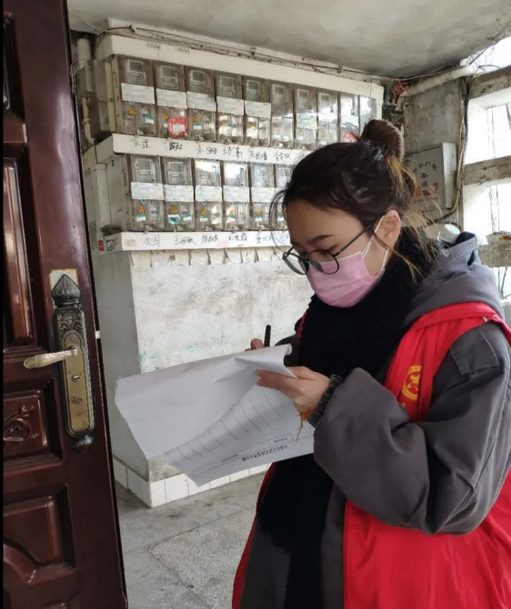 在疫情肆虐的日子里,来自重电电物学院微电1803的纪人洁便是这广大青年志愿者中的一员。她每天的工作就是为社区人口出入做登记,从早上8点到晚上8点。被问及为何选择站出来奋战一线时,她说“作为新时代大学生和入党积极分子,希望自己能在本次疫情防护工作中贡献自己的一份力量,有效防范疫情进一步发展。”