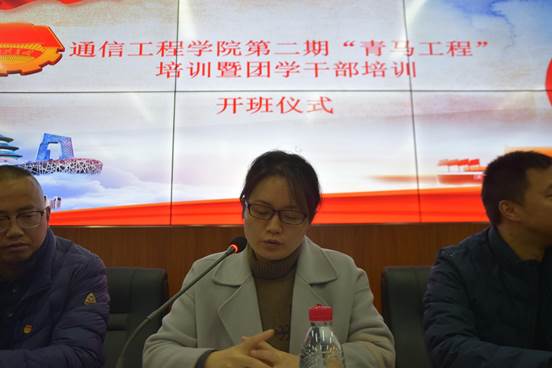 开班仪式在慷慨激昂的《共青团团歌》中拉开帷幕,首先由我院党总支书记曾晓宏教授为本次培训致辞,她在致辞中指出,希望同学们能够通过本次培训学有所用、学以致用。