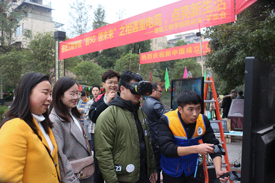 活动中,学院专业老师以浅显易懂的方式讲解5G移动通信技术和VR技术,前来围观的群众们纷纷感慨科技的力量。此外,通信工程学院党总支书记曾晓宏教授也参与到了活动中,来感受5G新生活。学院学生会工作人员为大家示范如何穿戴设备,带大家感受4K高清视频,体验VR云游戏等带来的科技趣味。络绎不绝的行人纷纷驻足停留,热情参与到活动体验中来,打开灵境新世界。前来体验的小朋友说:“哇!好神奇!我在那些高楼大厦里面耶。”;老年人说:“以前我们还不会上网,现在都发展这么快啦!”真是一片热闹非凡的景象!