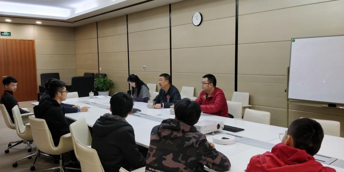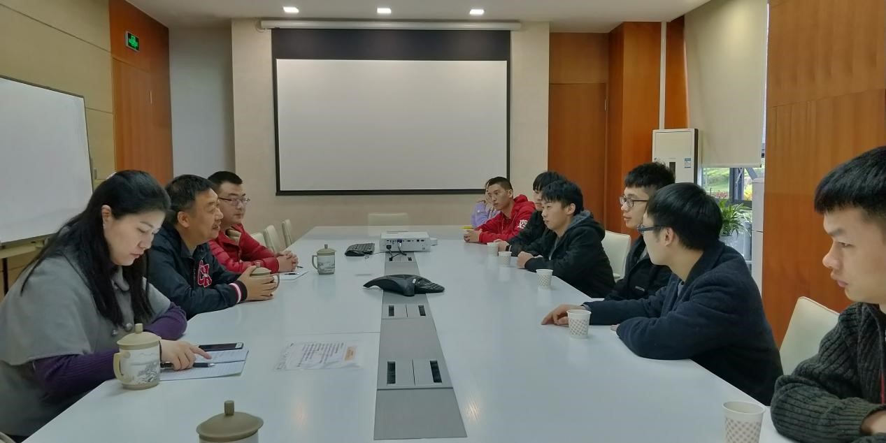 随后,公司将目前在工作岗位上的往届毕业生代表召集起来,在会议室中师生之间畅所欲言。这些同学中最早的有2013年的毕业生,已经是公司的老员工了。同学们对自己、对公司都有清晰的认识,一开始的不适、逐步的熟练、自己的努力、岗位的选择、目前的工作日常、生活的状态、未来的规划、在重电学习的回忆等等,这些都是他们的亲身经历、肺腑之言,此中有真意,此中见真情。其中一个细节,一位同学进门见到随行的一位老师,脱口而出“辅导员”,师生情谊溢于言表。张红斌还向同学们介绍了目前学校、学院的发展和喜讯,如入选国家“双高”建设名单、专业群建设、人才引进计划、实训楼建设等。