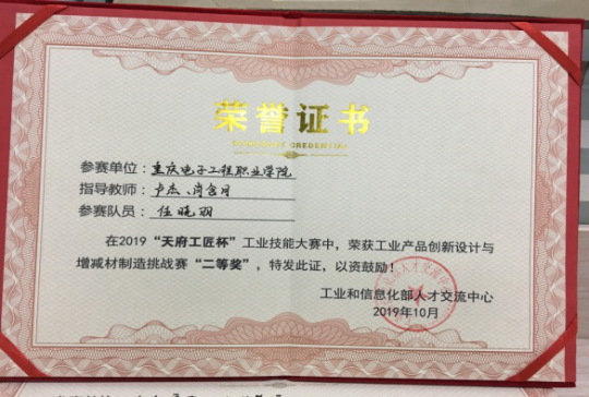 此次大赛以“让你的匠心、设计最‘靠蒲’”为主题,吸引了来自德国多特蒙德应用技术大学、德国科布伦茨手工业协会等德国院校、行业协会以及全国院校近4000名选手参加。我院师生赛场竞技拼搏,喜获2019“天府工匠杯”工业技能和工业设计大赛2等奖两项。