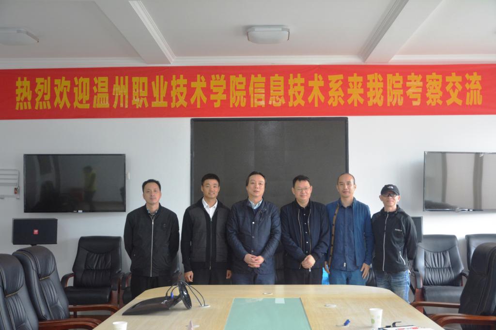 10月25日上午,温州职业技术学院信息技术系信息安全与管理专业负责人刘世华一行4人来我校人工智能与大数据学院考察交流,人工智能与大数据学院院长武春岭、工程与鉴定中心主任何欢、党政科负责人甘沅鑫出席了座谈会。