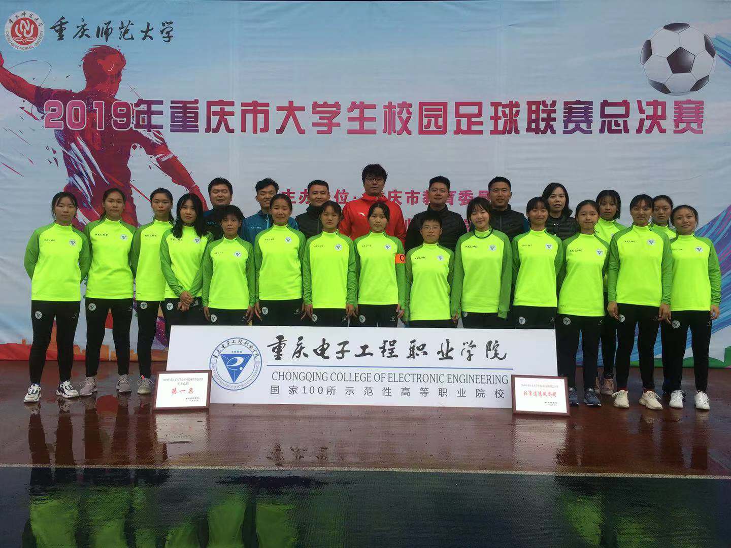 2019年10月19-25日由重庆市教育委员会主办,重庆师范大学承办的“2019重庆市大学生校园足球联赛总决赛”乙组比赛在重庆师范大学举行。参加本次乙组比赛的队伍共有34支代表队,600多名男女运动员,参赛人数是历届比赛人数最多一次。经过一周激烈角逐,重电男子足球代表队最终以5战全胜进14球失1球的成绩获得男子组冠军,创下了该组别连续十年夺冠的辉煌战绩。