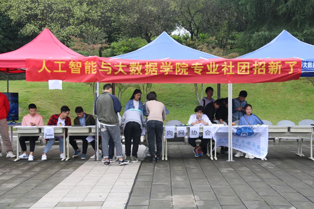 2019年10月23日,人工智能与大数据学院近10个特色专业协会在学子广场进行新学期招新活动。为更好吸引新生加入、发展社团,各协会社团均展示了极具特色的活动。招新现场热闹非凡,在校园内形成的风景线。