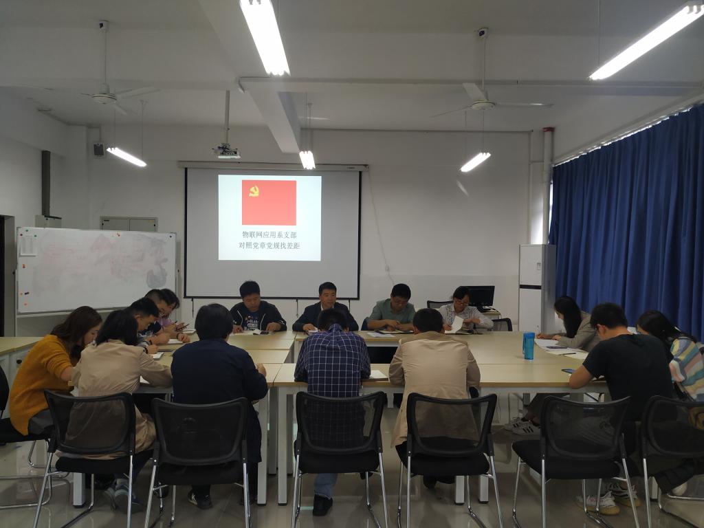 为深入学习贯彻习近平新时代中国特色社会主义思想,扎实开展“不忘初心、牢记使命”主题教育,物联网应用系党支部于2019年10月18日13:00在12-504组织召开对照党规党章找差距专题会议,党员中层领导干部进行检视剖析发言。
