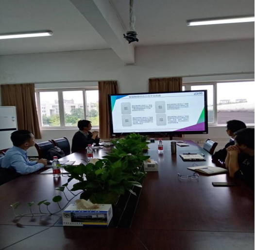 2019年9月18日上午,重庆清研理工智慧工厂设计研究院智能制造综合运营平台经理尹捷、运营平台销售工程师唐剑欣一行到访智能制造与汽车学院,进行校企合作项目洽谈。张进春院长代表学院党政表示热烈的欢迎。参加此次项目洽谈的还有我院副院长叶勇教授。