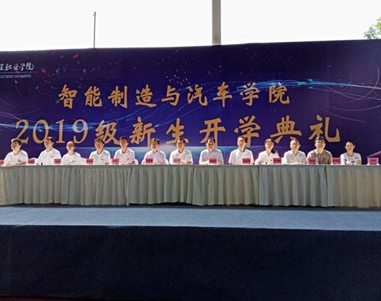 2019年9月11日上午,智能制造与汽车学院在风雨篮球场隆重举行2019级新生开学典礼。智能制造与汽车学院党总支书记罗永前副教授、院长张进春教授、副院长叶勇教授、组织员兼行政督导员李建平教授、党政科负责人封明亮老师、质量管理科负责人朱游兵老师、教务科负责人彭亚老师、学生管理科负责人白玥婕老师、团总支书记吴梁洲老师、社会服务科负责人甘守武老师、智能制造系主任陈进老师、汽车工程系副主任陈世江老师、自动化系副主任尹玲老师、学院专任教师、2019级各班辅导员以及全体2019级新同学参加了本次开学典礼。开学典礼由院党总支副书记丁伟主持。