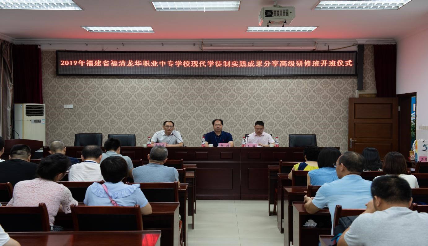 7月29日,福建省福清龙华职业中专学校2019年现代学徒制实践成果分享高级研修班,在我校正式开班。福建省福清龙华职业中专学校教务处主任杨清,我校培训与继续教育中心副主任张铁力,培训与继续教育中心综合科负责人王科,以及来自福清龙华职业中专学校的42名学员参加了开班仪式参加了开班仪式。