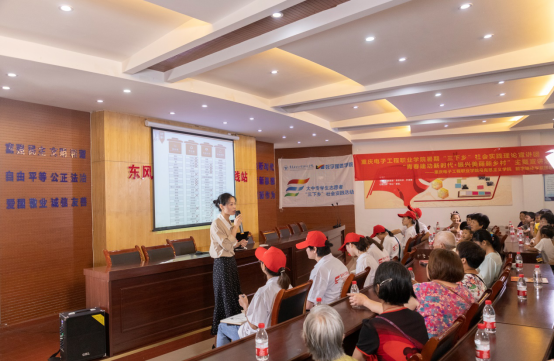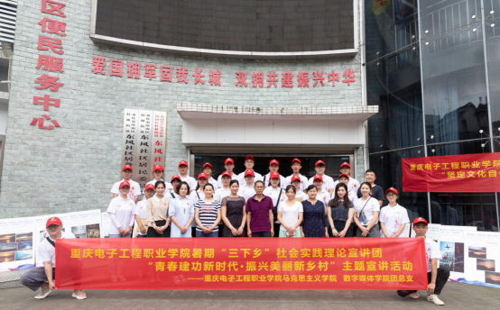 2019年7月18日,重庆电子工程职业学院马克思主义学院、数字媒体学院“青春心向党,建功新时代”暑期大学生“三下乡”社会实践理论宣讲团在重庆市潼南区东风社区服务中心开展了以“青春建功新时代,振兴美丽新乡村”主题的宣讲活动,身体力行的将“小我”融入“大我”,明责任,强担当,重实干,让思政课在基层“动”起来。