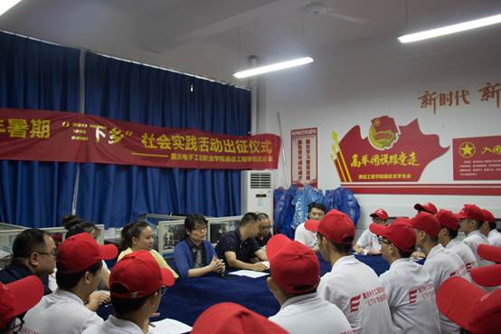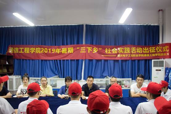 为深入贯彻落实重庆市2019年暑期“三下乡”社会实践活动出征仪式相关要求及精神,进一步明确我院“三下乡”目标要求,对志愿者进行出发前培训。2019年7月16日下午13:00,在赵旭、钟敏、张攀、徐东、刘意五位老师的带领下,通信工程学院2019年暑期“三下乡”社会实践活动出征仪式在13109活动室召开,党总支书记曾晓宏、党总支副书记万鹏出席了本次仪式,为四只队伍的志愿者们提出要求、加油打气。