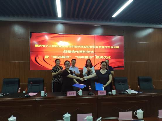 最后,双方签署了产学研战略合作协议,并进行了“重电校外实训基地”和“重庆铁塔培训基地”的授牌。