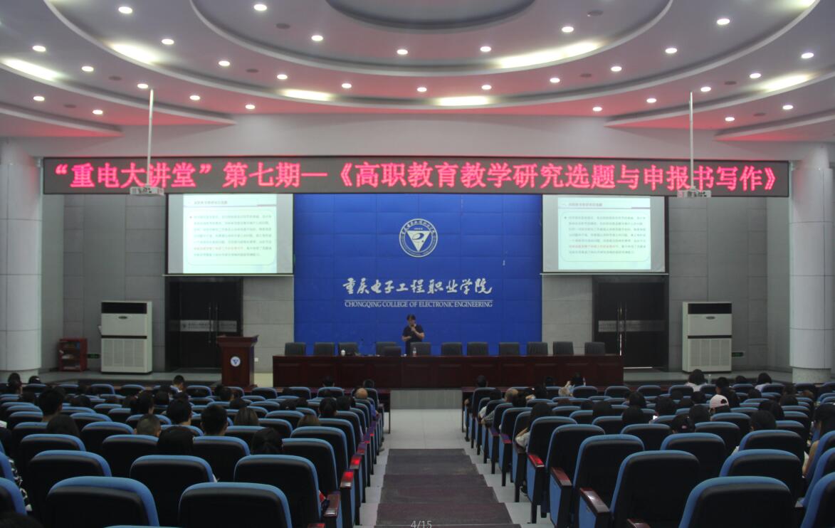 2019年7月4日下午14:00,由重庆电子工程职业学院科研与社会服务处主办、财经管理学院承办的“重电大讲堂”—第七期学术讲座在博远厅顺利举办。本次讲座的主题是高职教育教学研究选题与申报书写作,由财经管理学院骆永菊教授主讲。参与讲座的有财经管理学院全体教师,部分二级学院教师代表和2017级、2018级学生代表。