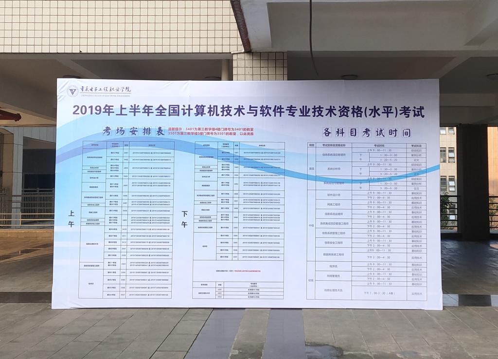 考虑到外来考生不熟悉考点环境,软考工作小组组织了7名学生志愿者,分布在考点各处入口,及时引导考生到达相应的考场,确保考试顺利进行。