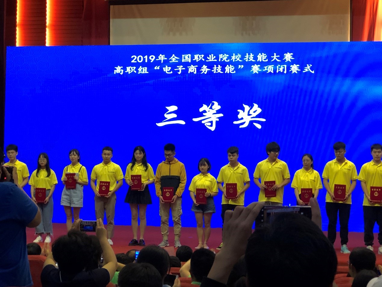 5月18日,2019年全国高等职业院校技能大赛高职组“电子商务技能”赛项在济南工程职业技术学院开赛,本次电子商务技能赛项共有87所来自全国33个省市区的高职院校的348位选手参加竞赛。我校财经管理学院周苗、刁子璇、杨嘉、陈璐同学组成的代表队,与来自全国的选手们同场竞技,经过7个小时的激烈角逐,我校参赛选手以良好的心理素质、扎实的专业技能、齐心协力的团队精神,最终荣获全国职业院校技能大赛高职组“电子商务技能赛项”三等奖。