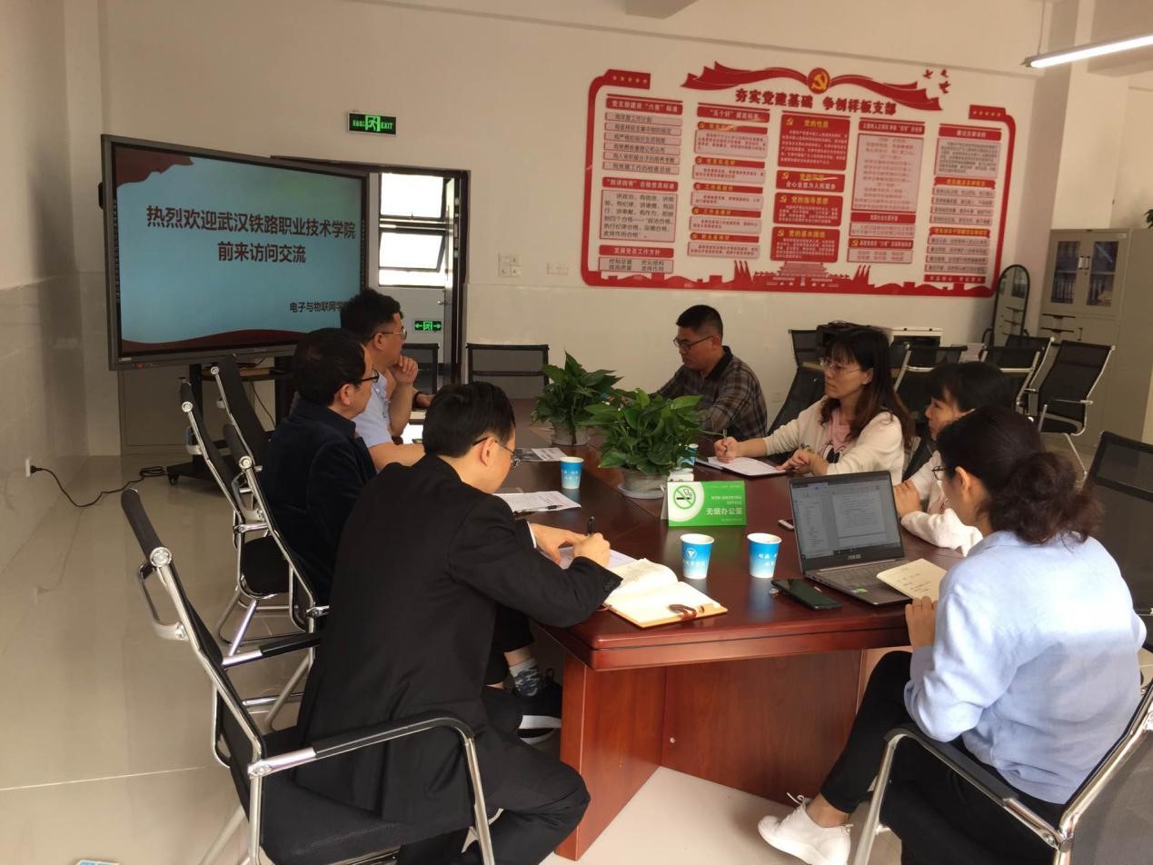 2019年5月10日上午9:00,武汉铁路职业技术学院机械与电子学院副院长张辉一行三人来我院调研参观。我院陈良院长、智能电子系主任王用鑫、信息服务系主任刘睿强、学科带头人王宝英、武新出席了本次座谈会。