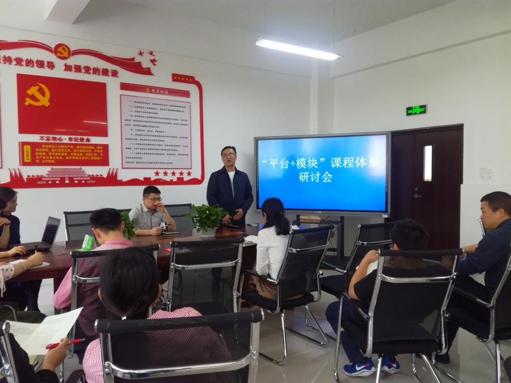 王用鑫主任阐述了“平台+模块”课程体系建设的重要意义,在职业教育大发展的新形势下,专业群平台的建设可助推专业更高层次的发展,模块课程建设为专业培养目标提供了更加清晰高效的发展路线,新课程体系建设最终是让学生能够实现更高质量的就业。