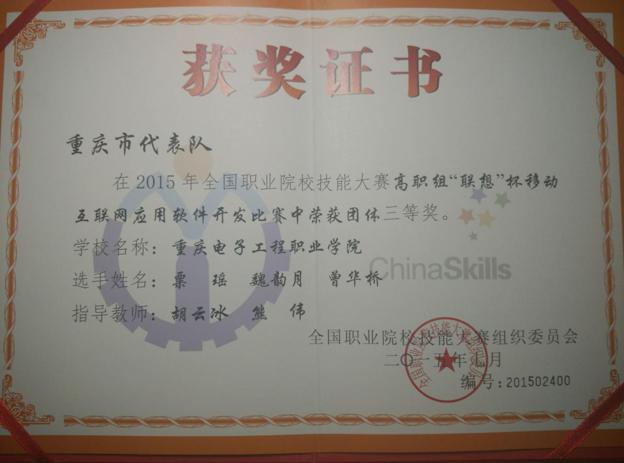 2015年全国职业院校技能大赛移动互联网应用软件开发三等奖