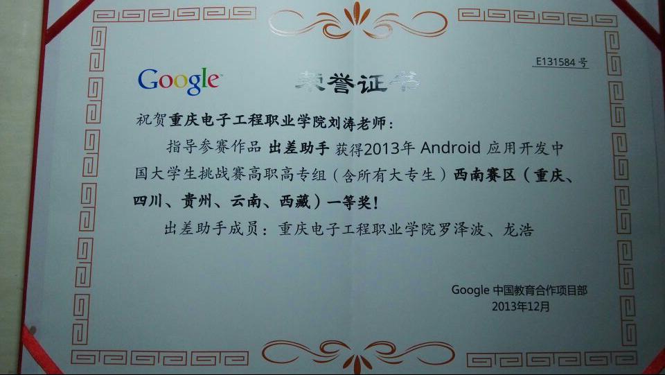 2013年谷歌Android应用开发中国大学生挑战赛高职高专组西南赛区一等奖