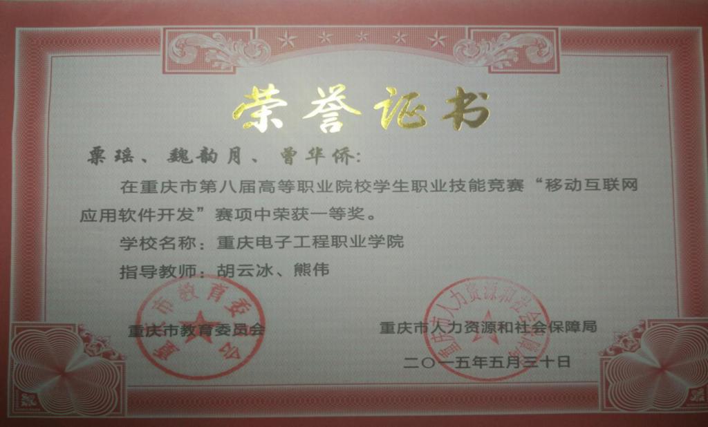 2015年移动互联网应用软件开发重庆市一等奖