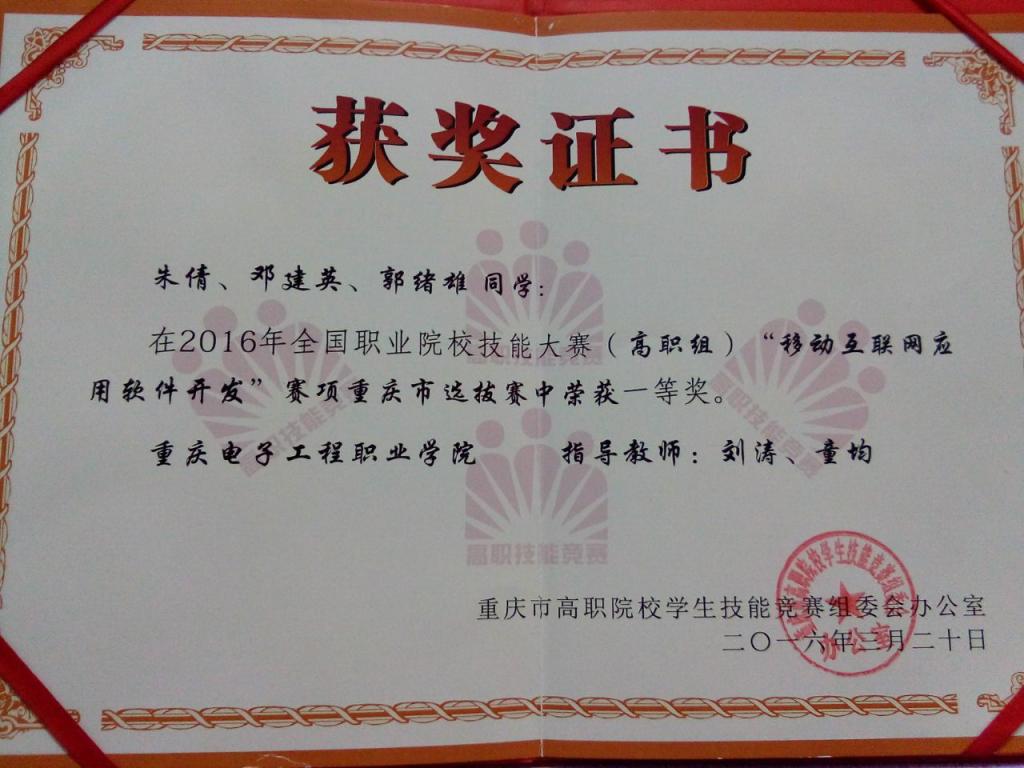 2016年移动互联网应用软件开发重庆市一等奖