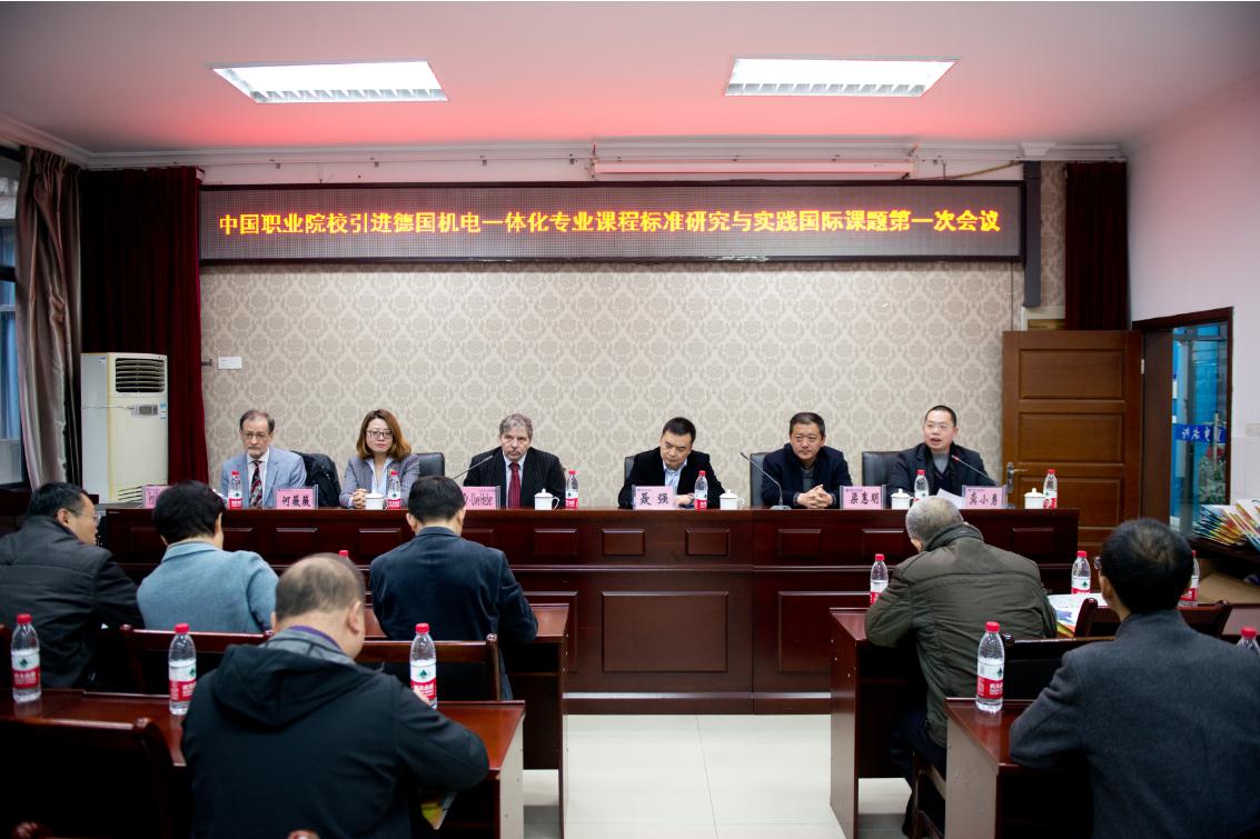 3月4日上午,“中国职业院校引进德国机电一体化专业课程标准研究与实践”国际课题第一次(中国)会议在我校举行,德国联邦手工业协会总会职教中心所专家乌沃·海博博士(Dr.UweHeiber),德国多特蒙德应用技术大学机电学院院长克里斯蒂安.李贝特教授(Prof Christian Liebert),重庆电子工程职业学院校长聂强,北京德信合力教育科技有限公司执行董事何薇薇,白银矿冶职业技术学院院长梁惠明等出席会议,会议由重庆电子工程职业学院副校长龚小勇主持。