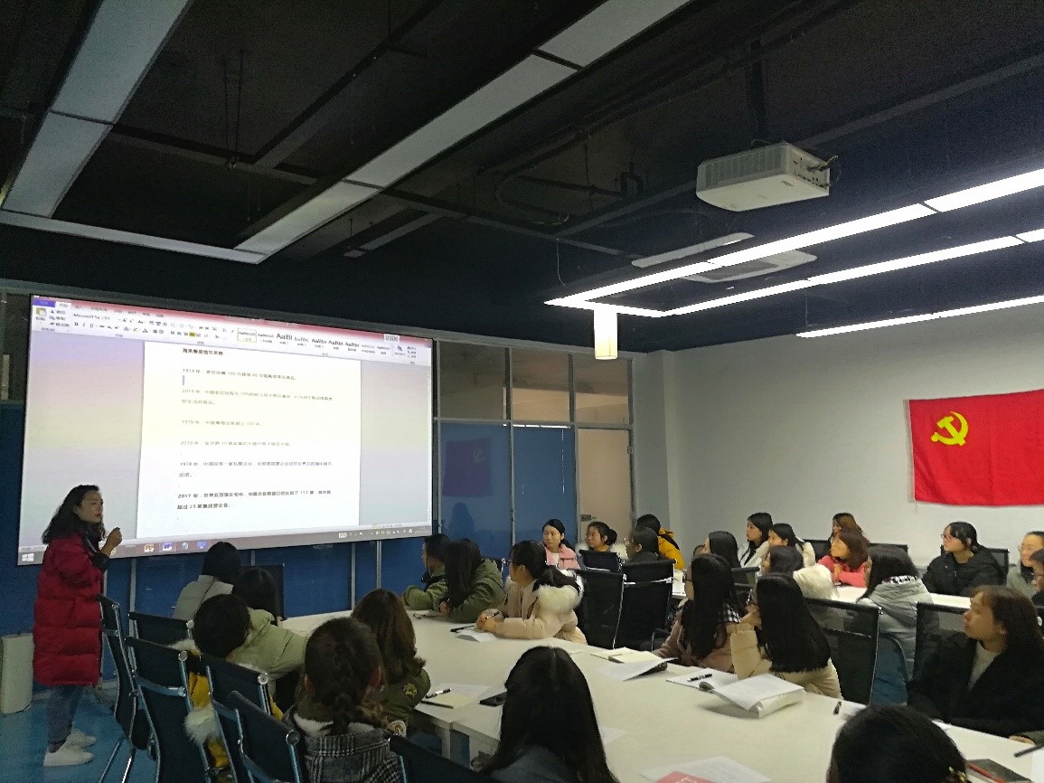 活动开始,康亮书记与入党积极分子们一起回顾了从1978年到2018年。中国从一个贫穷落后的国家发展成了一个经济大国,党和人民历尽千辛万苦、付出的各种代价取得的宝贵成果。从制度创新、非均衡发展、巨国效应以及技术破壁等四个方面分析了推动中国经济发展的四个动力。