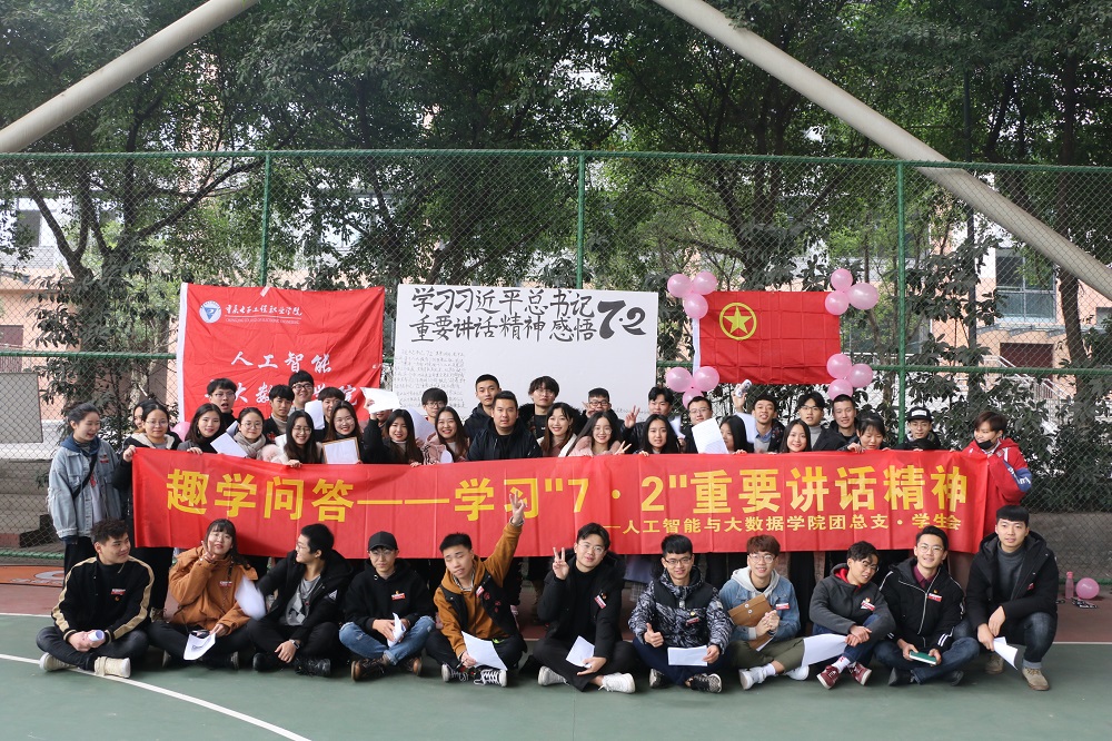 为深入学习领会习近平总书记在同团中央新一届领导班子成员集体谈话时的重要讲话精神,切实抓好团的十八大精神学习宣传贯彻工作。人工智能与大数据学院团总支·学生会于2018年12月13日中午12点30分,在风雨篮球场开展了以学习习近平总书记“7.2”重要讲话精神为主题的“趣学问答”活动。我院学管科负责人白锐老师及团总支·学生会51名干部共同参与。