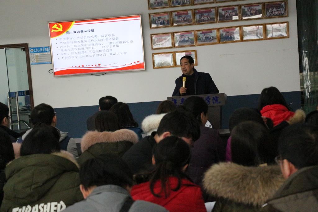 2018年12月13日下午,我院在培训中心大厅召开“以案说纪、以案说法、以案说德、以案说责”警示教育会。会议由总支书记罗永前主持,全体教职工参加了学习。