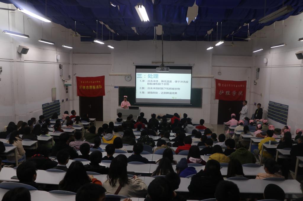 医学无处不在,常识不可或缺。为促进高校间的交流合作,提升同学们的医护意识,增加急救常识。人工智能与大数据学院于2018年11月22日下午1点携同重庆医药高等专科学校护理学院的“天使志愿服务队”在南校区7栋教学楼开展了“急救护理常识交流会”。