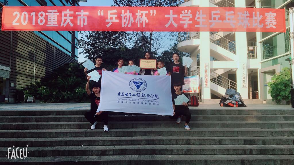 我校乒乓球代表队由体育与国防教学部部长徐然任领队,主教练杨晓梅老师,教练程勇老师带队参加,经过激烈角逐,我校乒乓球队最终荣获2018年重庆市大学生乒乓球比赛的男子团体冠军,获得男子双打冠军,混双冠军,亚军,季军,男子单打亚军和第五名,女子团体亚军,女子单打冠军和第五名,女子双打第五名。同时杨晓梅老师,程勇老师被竞赛组委会评为“重庆市乒乓球优秀教练员”。